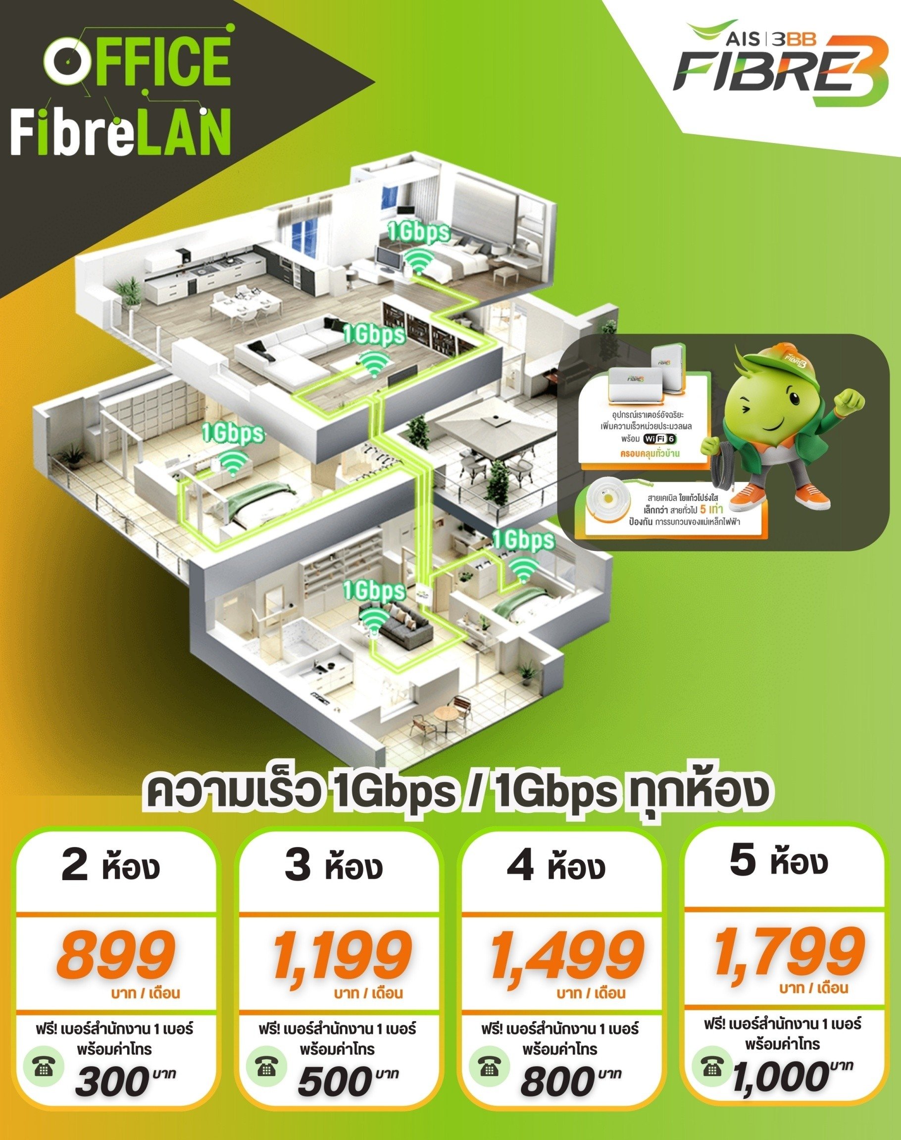 ความเร็วสูงสุด 1 Gbps ทุกห้อง เหมาะกับบ้านใหญ่และออฟฟิศ